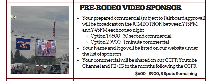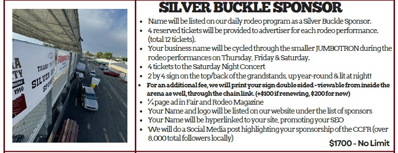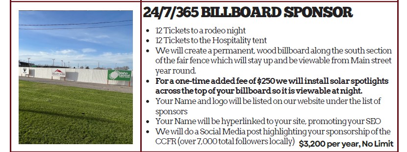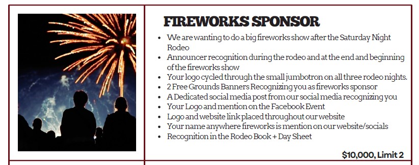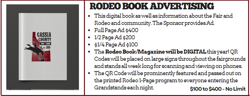 Deadline to be a Sponsor for the Cassia County Fair and Rodeo 2025 is June 15th, 2026. First right of refusal period for renewing Sponsors is January 1 – February 28th of each year.