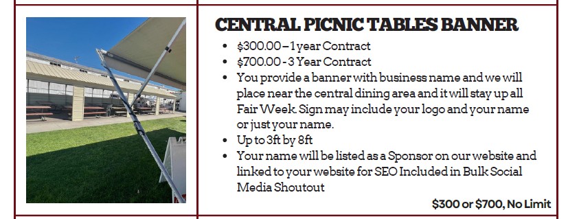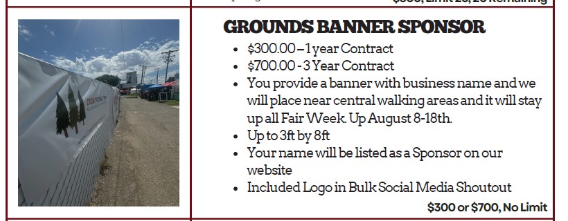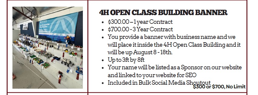 Your support helps us create unforgettable experiences and uphold the vibrant tradition of our beloved fair and rodeo. Whether you’re a large corporation or a local business, we have tailored sponsorship opportunities just for you. Your partnership allows us to showcase your brand while enhancing the community’s experience at our event.